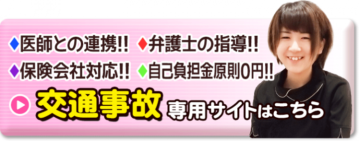 当院は交通事故のケガを得意としており、手技によって筋肉の緊張をといて血流や圧迫を改善したり、傷の修復を促したりすることに自信がありますので、まずはご相談ください。